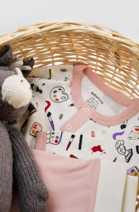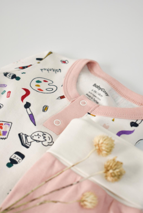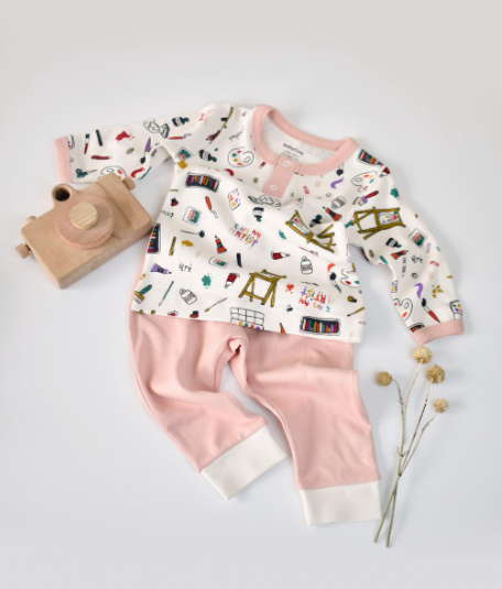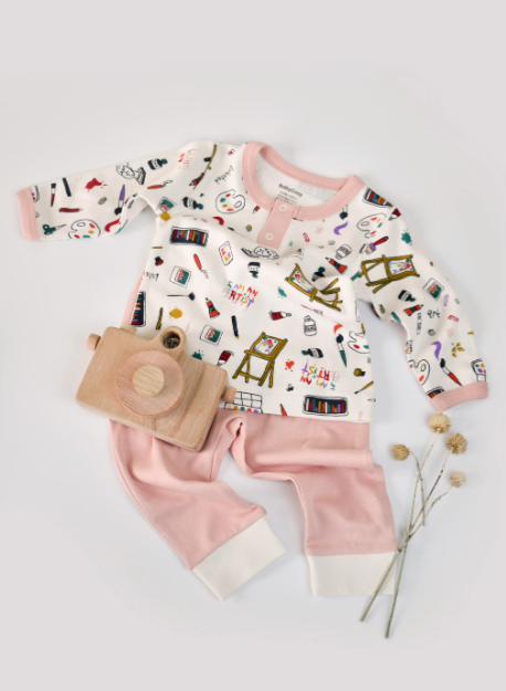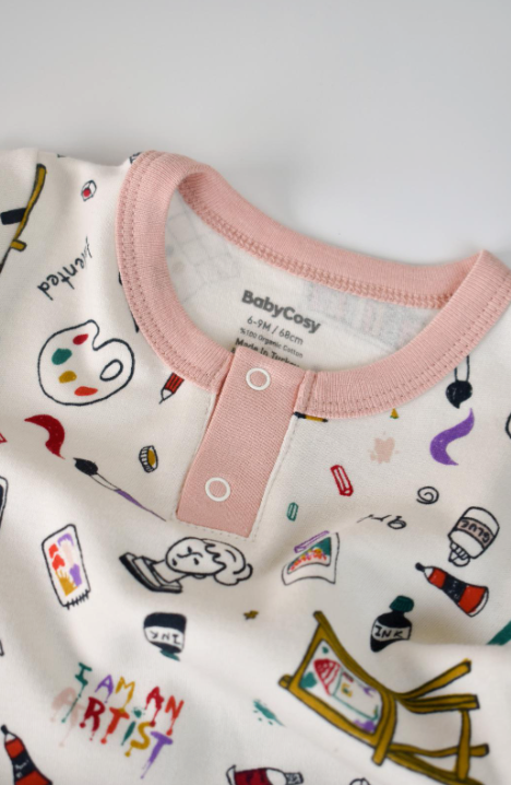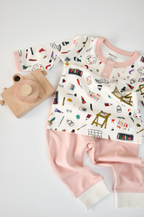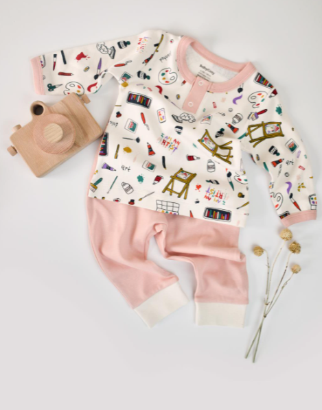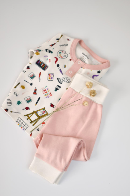 Pureopia — Organic Baby Pajamas — Pink White Artist